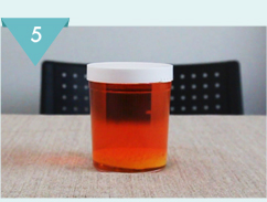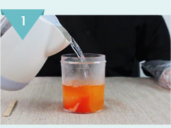 クリスタルの粉を容器に入れ、容器の上方にある線まで熱湯を注ぎます。